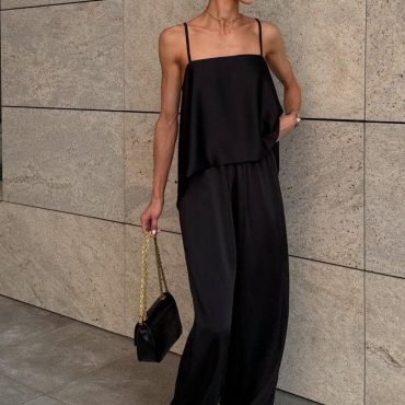 Silky Two Piece Set Women Wide Leg Pants