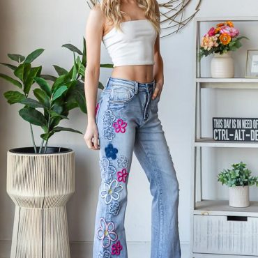 Heart Embroidered Bell Bottom Jeans: Women’s Boho Style