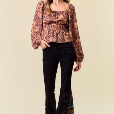 Black Western Style Flared Jean: Aztec Print Bell